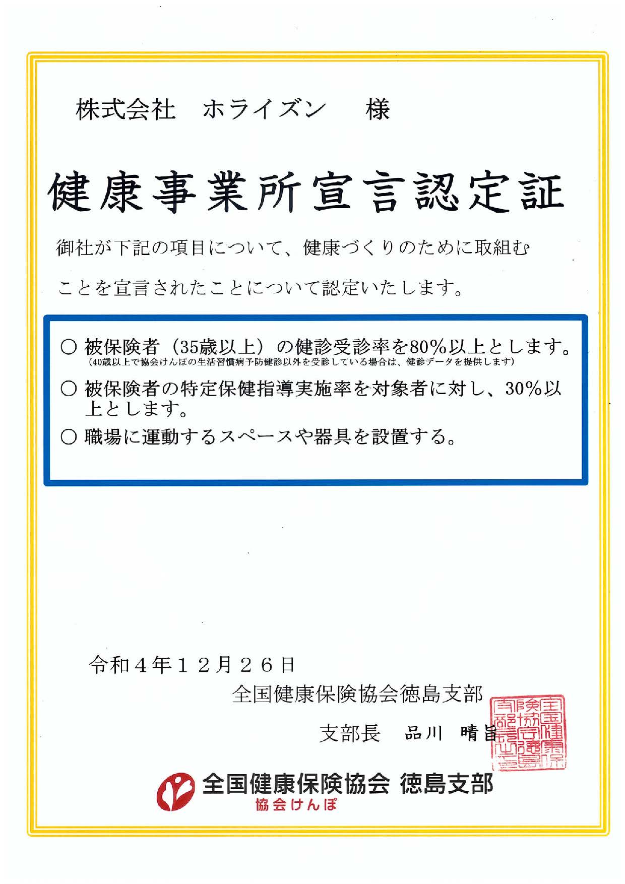当事業所は健康事業所宣言の認定事業所です。